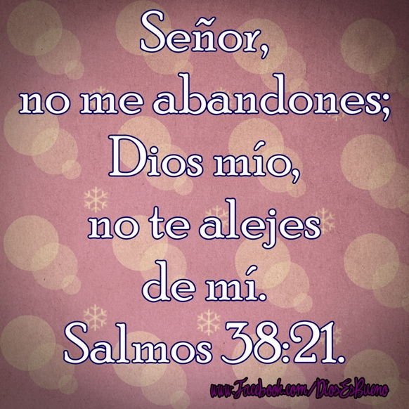 Salmos 38:21 Palabras Que Fortalecen Imagenes de Dios Es Bueno Para compartir en Facebook Dios Es Bueno hace 13 años No me desampares, oh Jehová;Dios mío, no te alejes de mí. Salmos 38:21 (Reina-Valera 1960)